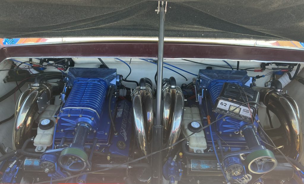 The heart of this beast lies in its twin Mercury 525s, which have been upgraded with Whipple Superchargers to produce a combined ~1,300 HP.